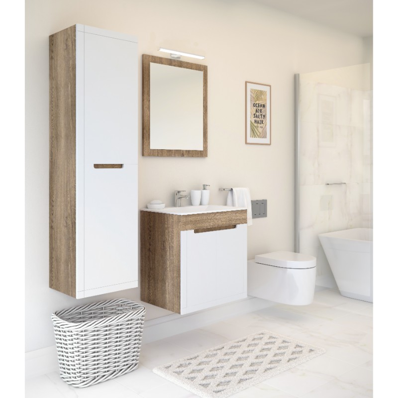Andrea ogledalo sa ormarićem i rasvetom dizajnom podseća na skandinavski stil, pa će se sa lakoćom uklopiti u svako kupatilo. U unutrašnjosti ima dovoljno mesta za odlaganje kupatilskih sitnica, što u mnogome pomaže boljem organizovanju i čistoći kupatila. Zahvaljujući kombinaciji bela-drvo, unosi dozu elegancije i glamura u svaki prostor. Izrađeno je od najkvalitetnijeg medijapana i iverice. Montira se na zid, a vrata poseduju sporo-zatvarajući mehanizam, kako bi se sprečila oštećenja. Zahvaljujući vlago-otpornom LED osvetljenju olakšaće vam svakodnevnu rutinu i učiniti obaveze mnogo lakšim i prijatnijim.
