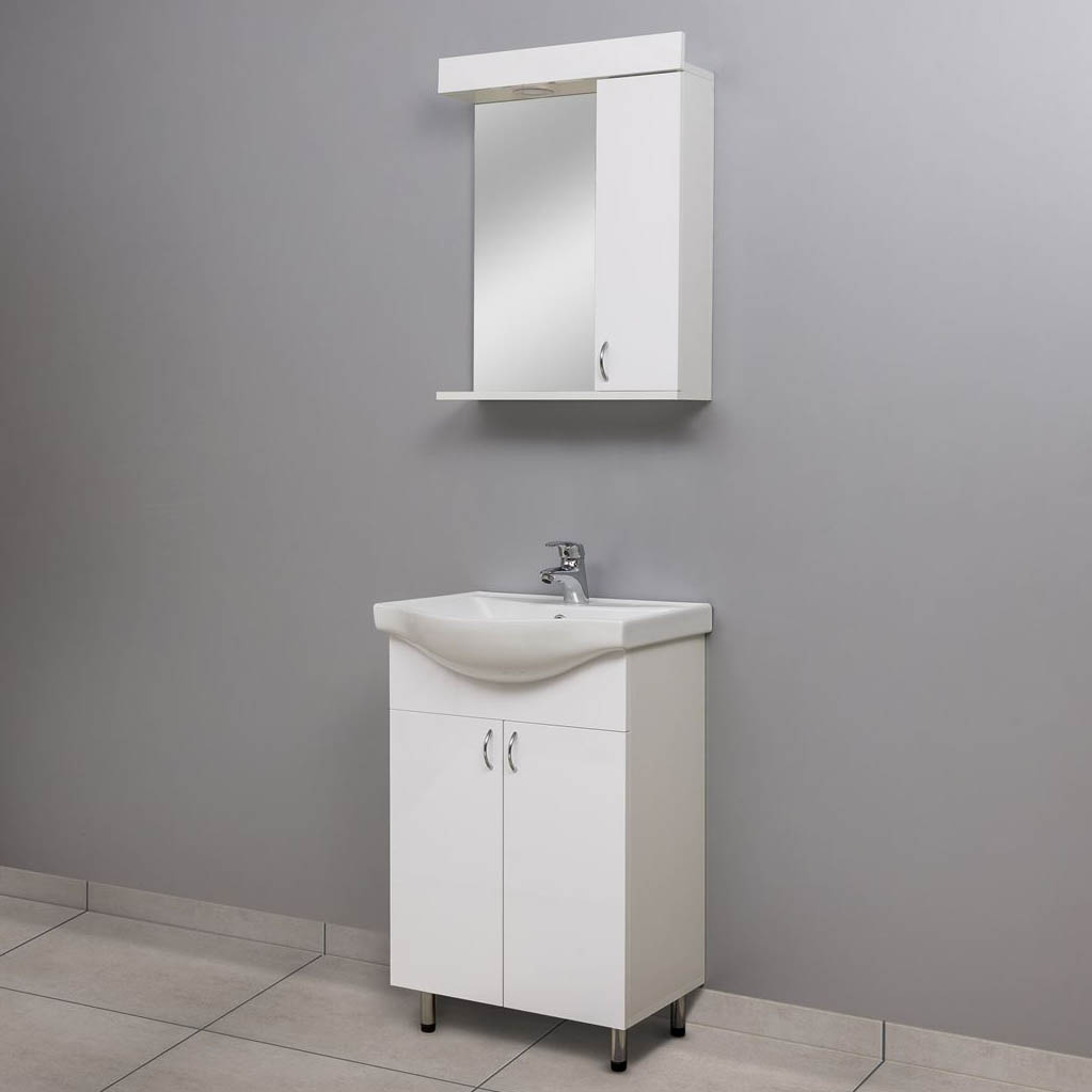 EKONOMIK OGLEDALO SA ORMARIĆEM I RASVETOM (550A3) svojim dizajnom pleni na prvi pogled, pa će se sa lakoćom uklopiti u svako kupatilo. U unutrašnjosti ima dovoljno mesta za odlaganje kupatilskih sitnica, što u mnogome pomaže boljem organizovanju i čistoći kupatila. Zahvaljujući osvežavajućoj belini, unosi dozu elegancije i glamura u svaki prostor. Izrađeno je od medijapana. Montira se na zid, a najbolje se uklapa iznad lavaboa standardne veličine. Zahvaljujući prijatnom osvetljenju olakšaće vam svakodnevnu rutinu i učiniti obaveze mnogo lakšim i praktičnijim.