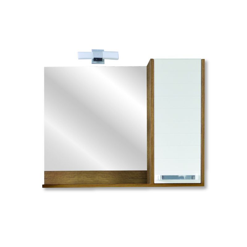 Marina ogledalo sa ormarićem i rasvetom je idealno za mala i srednja kupatila, zbog svojih propocija. U unutrašnjosti ima dovoljno mesta za odlaganje kupatilskih sitnica, što u mnogome pomaže boljem organizovanju i čistoći kupatila. Bela boja mu daje eleganciju i lako ga uklapa u svaki enterijer, a boja drveta mu daje izuzetan šmek. Izrađeno je od najkvalitetnijeg medijapana i iverice. Montira se na zid, a vrata poseduju sporo-zatvarajući mehanizam, kako bi se sprečila oštećenja. Zahvaljujući vlago-otpornom LED osvetljenju olakšaće Vam svakodnevnu rutinu i učiniti obaveze mnogo lakšim i prijatnijim.